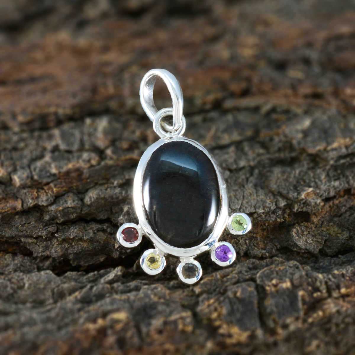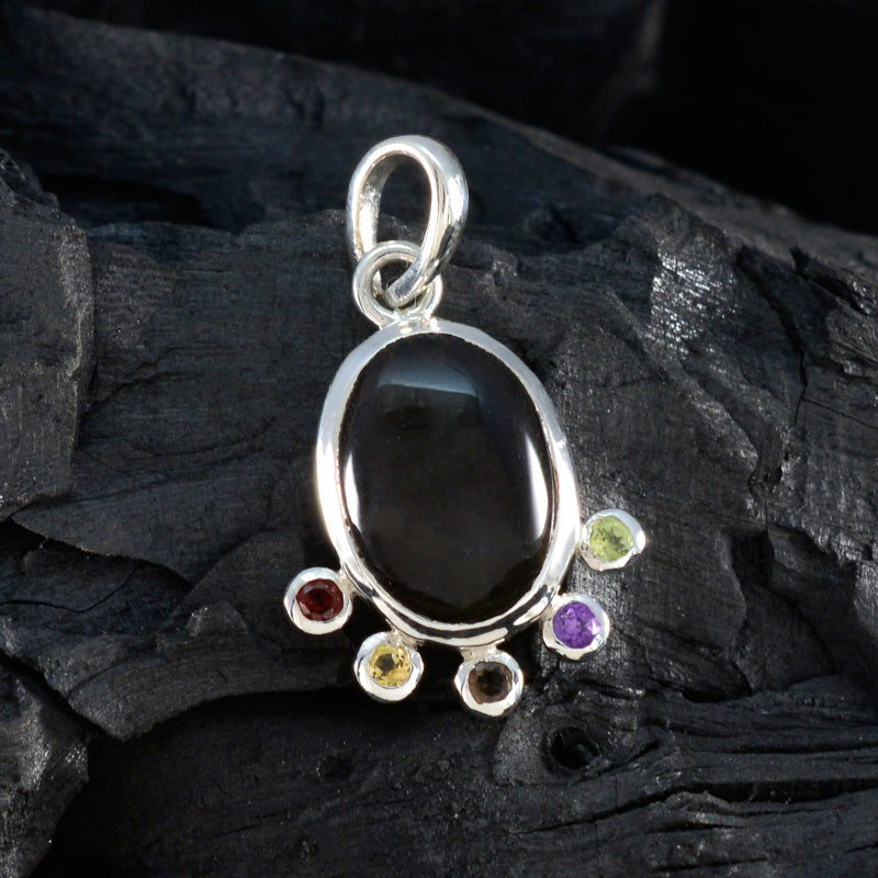 Grace, anspruchsvoller Schmuck mit mehreren Steinen und zartem Hexa-Anhänger aus 925er Silber. Marokkanischer mehrfarbiger Grace-Anhänger mit Waage-March-Madness-Lünette und Cabochon.