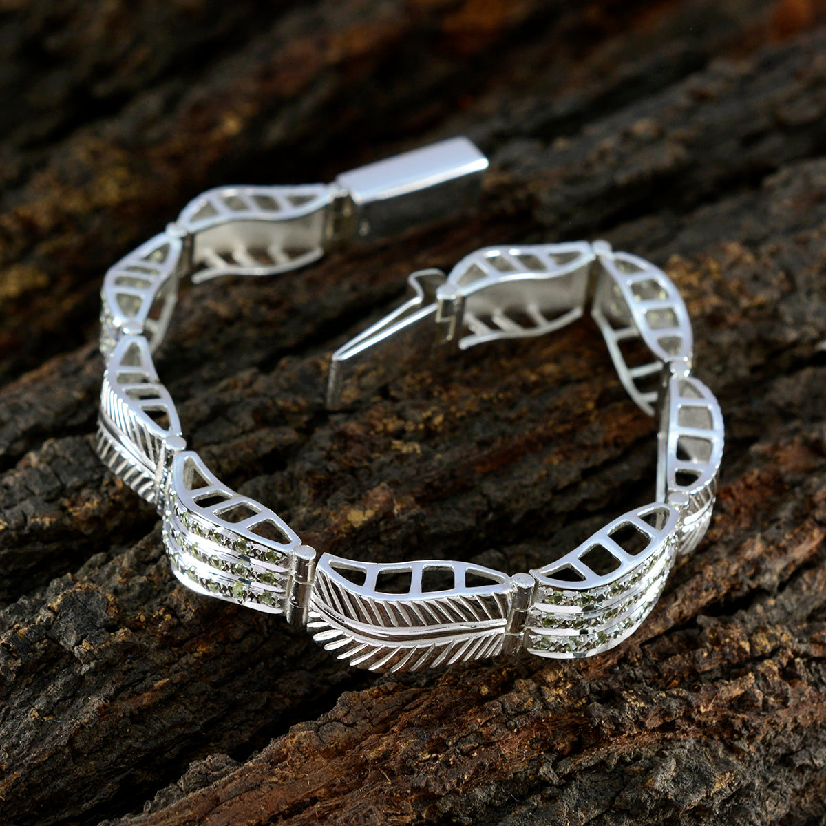 Vielseitiges Peridot-Armband mit mehreren Facetten von Lucy Silver. Tennisarmband aus Silber für den Singles‘ Day Libra, Schmuck für September. Türkisches Wintergrün-Tennisarmband aus Silber.