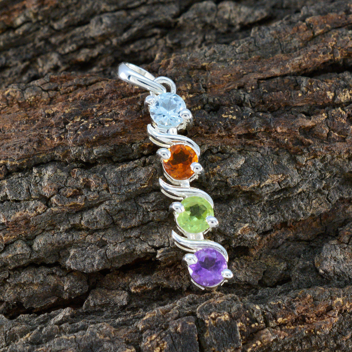 Inès Romantic Multi Stone 925 Silver Round Dainty quarter Pendant Jewelry. Turkish multicolor Cancer St. Nicholas’ Day Prong Faceted Silver Inès Pendant.