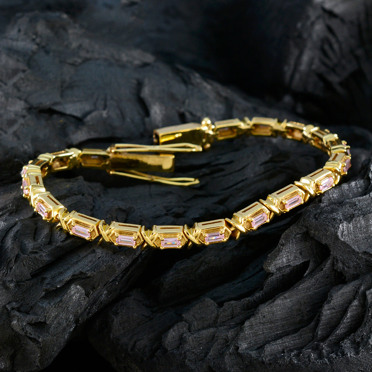 Leah Yellow Gold Eye-catching Pink CZ Square Faceted Bracelet. April Fools Capricornus Tennis Silver Bracelet Jewellery For December. Middle Eastern True Autumn Pink multiple Tennis Silver Bracelet.