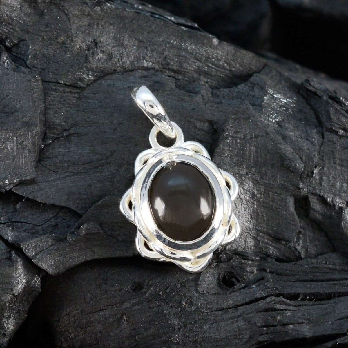 Emily Engagement Smoky Quartz Sterling Silver Oval Dainty Solitaire Pendant Jewellery. Italian Brown Virgo Glamour Bezel Cabochon Silver Emily Pendant.