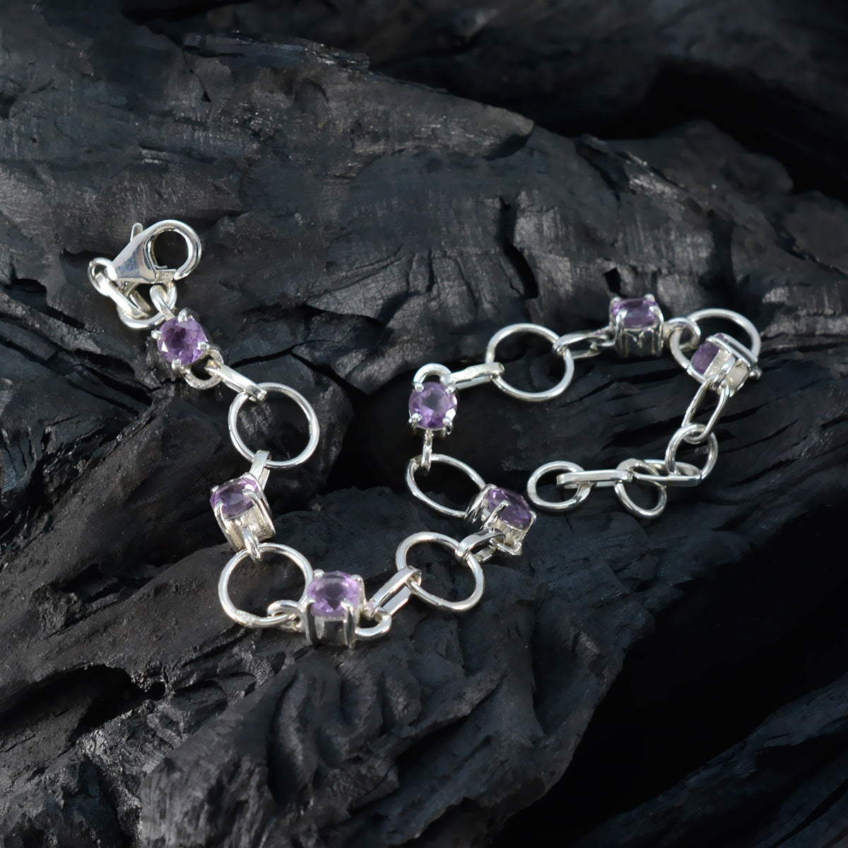 Bracelet Abigail Silver délicat avec améthyste ronde facettée. Bracelet en argent sterling à maillons Balance, bijou de septembre. Bracelet allemand à maillons multiples en argent sterling violet foncé automnal.