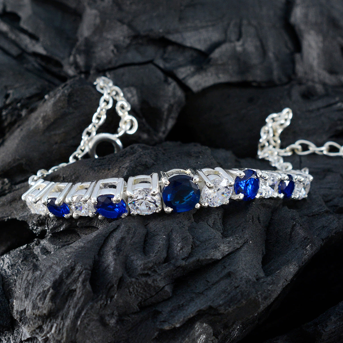 Bracelet Inès Silver ultra-fin en saphir bleu et zircones cubiques ronds à facettes. Bracelet tennis en argent pour couple de scorpions, bijoux pour octobre. Bracelet tennis en argent bleu foncé d'automne espagnol, multiples motifs.