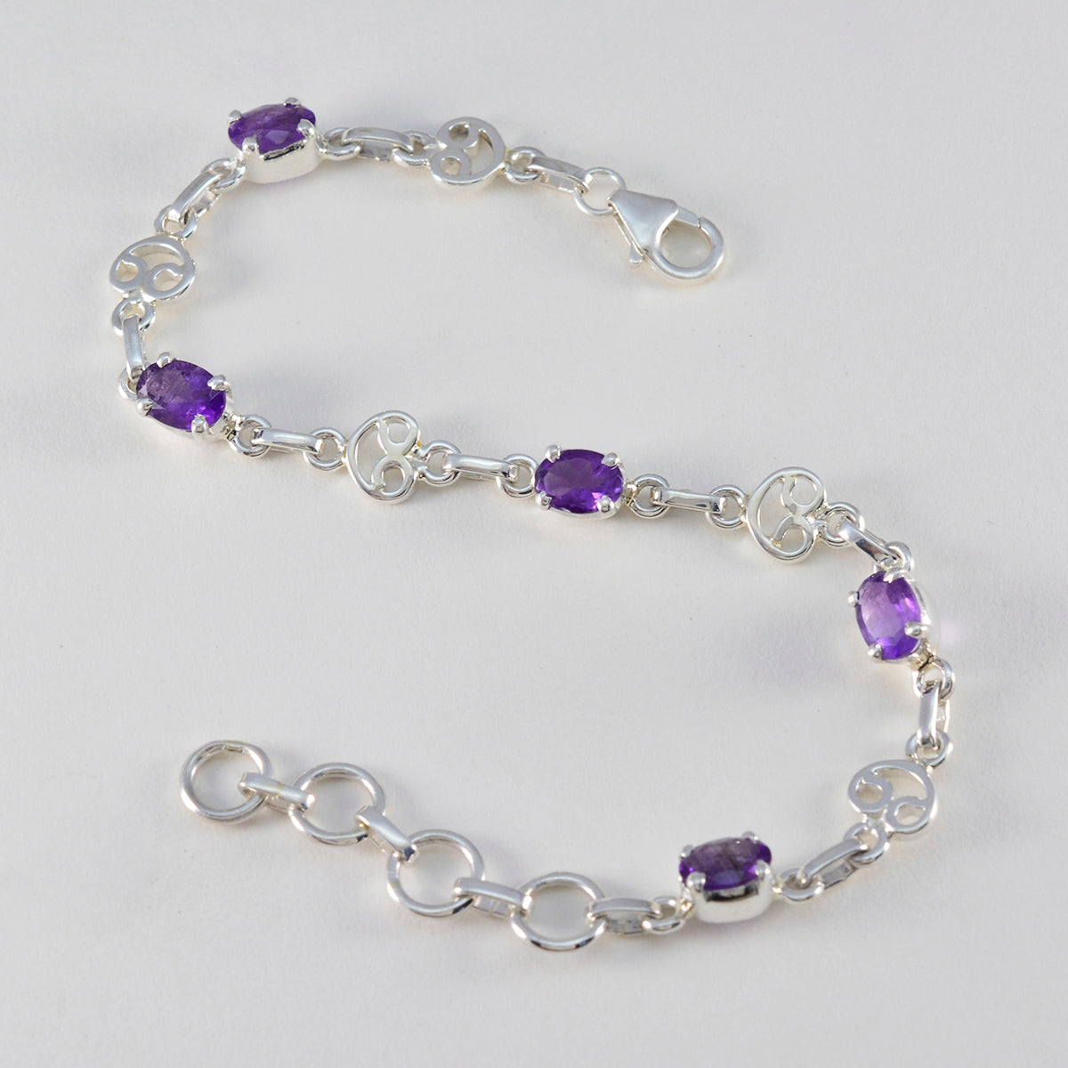 Zoey Silver スリム アメジスト オーバル ファセット ブレスレット。ベルリンファッションウィーク 2月 魚座 リンクス 925 シルバー ブレスレット ジュエリー。モロッコ風 明るい 春 パープル マルチリンク 925 シルバー ブレスレット。