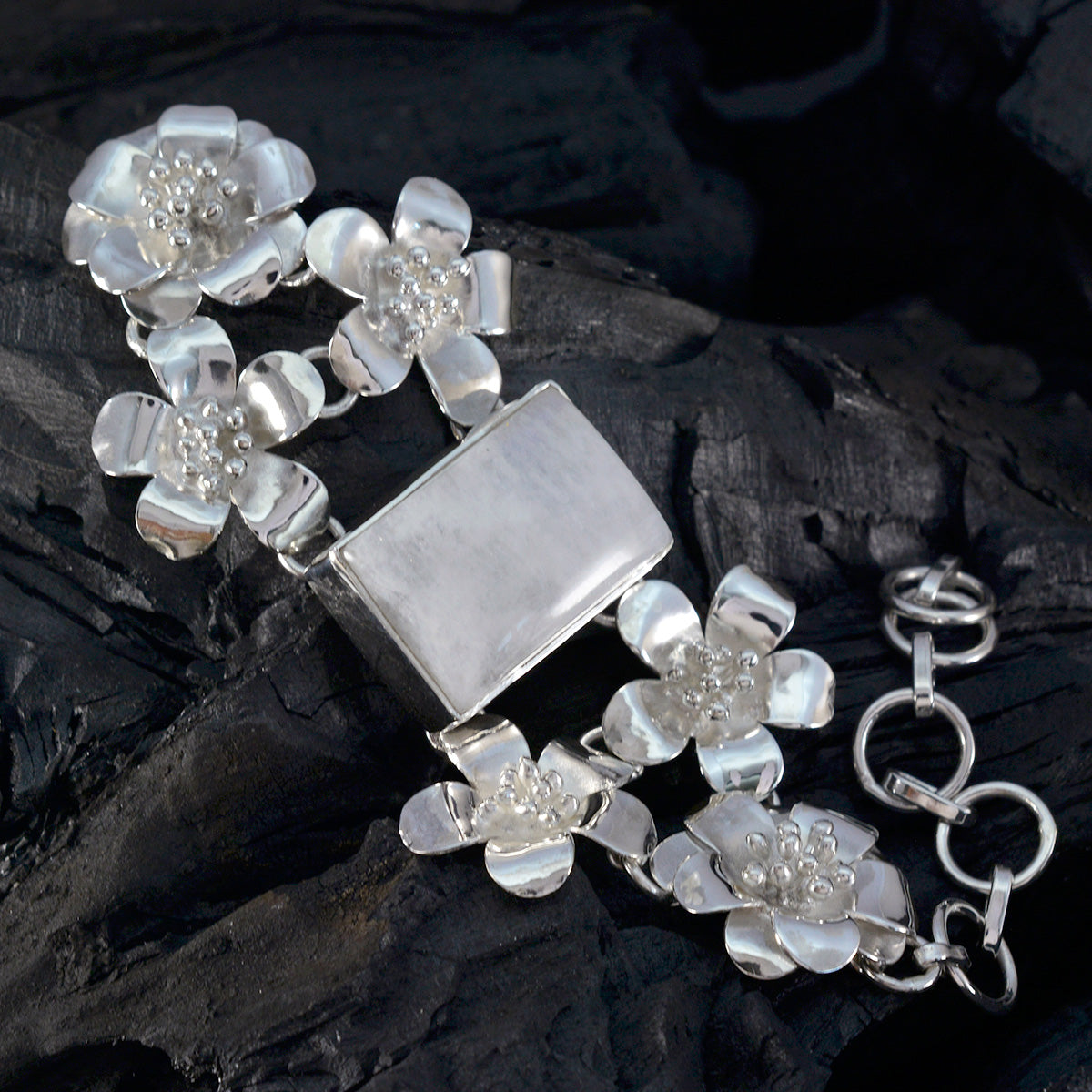 マチルデ・シルバーのエッセンシャル・レインボームーンストーン・スクエアカボションブレスレット。スターウォーズ・デーのカプリコルヌス・リンクス925シルバーブレスレット(12月限定)。メキシカン・トゥルー・ウィンターホワイトのマルチリンクス925シルバーブレスレット。