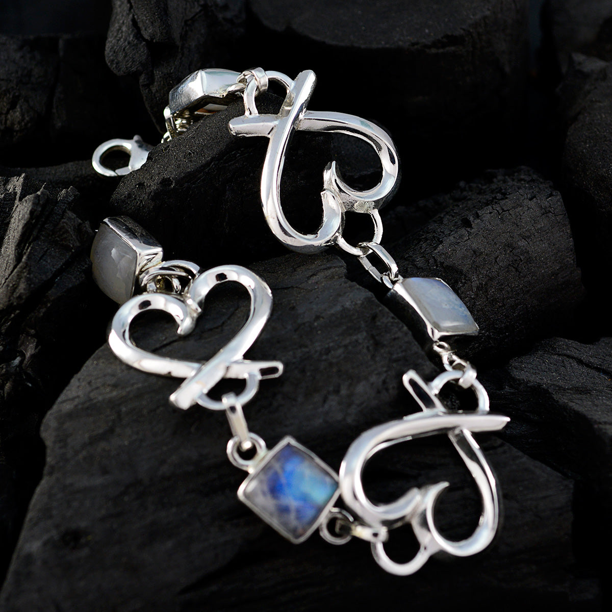ケネディシルバーのフェザーライトレインボームーンストーンスクエアカボションブレスレット。6月の聖パトリックデー、蟹座のリンクススターリングシルバーブレスレットジュエリー。メキシカンウィンターホワイトのマルチリンクスターリングシルバーブレスレット。