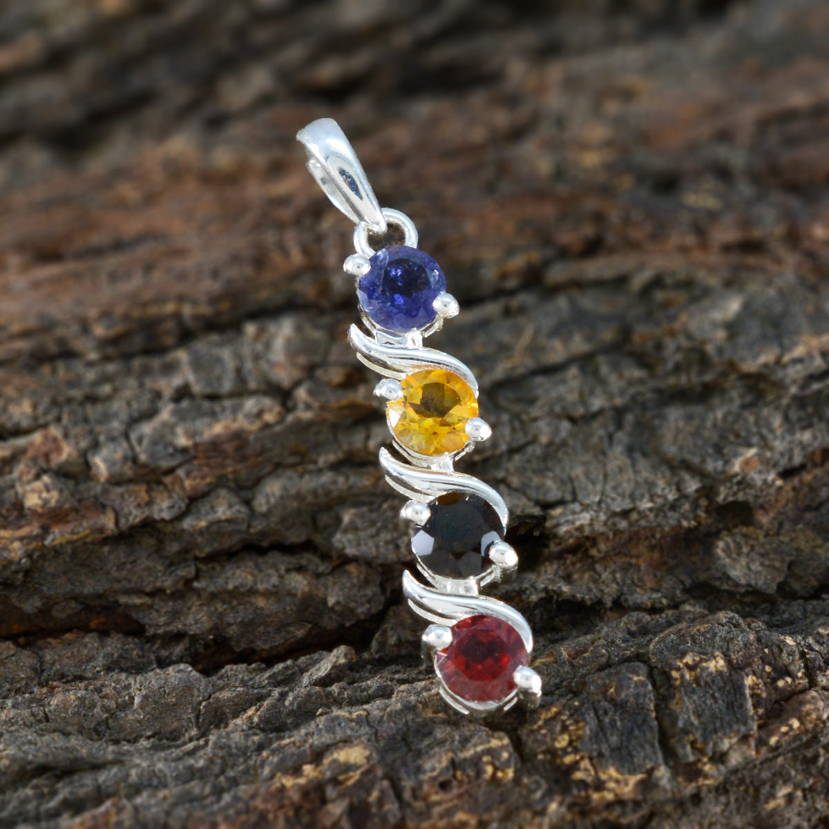 Yasmin Luxe Multi Stone Zilveren Mix Delicate kwarthanger Sieraden. Mexicaanse veelkleurige Boogschutter Zomerzonnewende Bezel Facet Geslepen Zilveren Yasmin Hanger.
