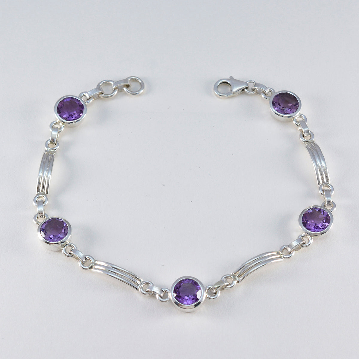 Yasmine Zilveren Featherlight Amethist Ronde Facet Armband. Strik Dag Gemini Schakels Zilveren Armband Sieraden voor Mei. Australische Warme Winter Paarse Meerdere Schakels Zilveren Armband.