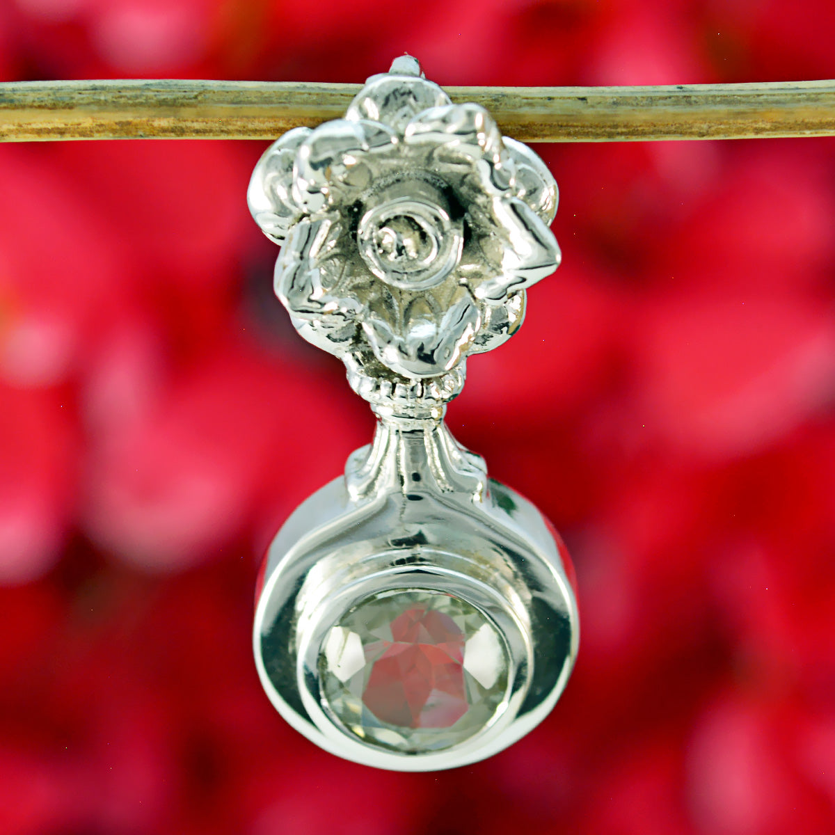 Clara Feminine Green Amethyst Silver Mix Minimal Solitaire Pendant Jewelry. French Light Green Pisces Pride Parade Hamburg Bezel Faceted Silver Clara Pendant.