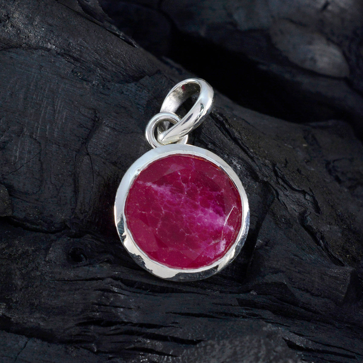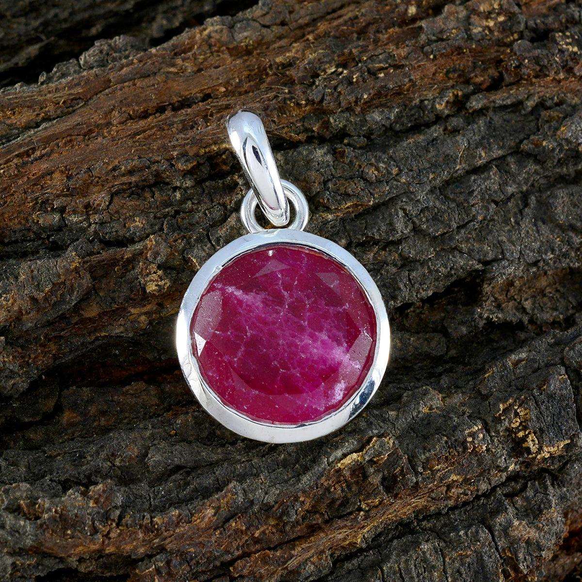 María Engagement Indian Ruby 92.5 Silver Round Featherlight Solitaire Pendant Jewellery. French Red Leo Daughters Day Bezel Faceted Silver María Pendant.
