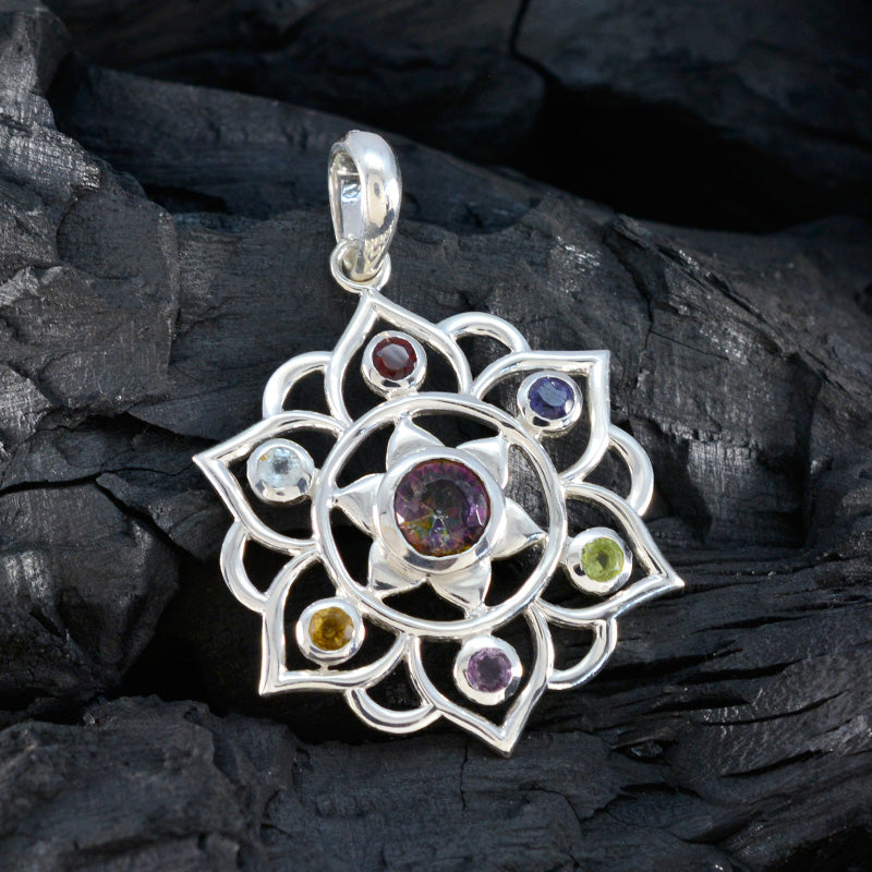 Yasmine Rope-Wire Multi Stone Sterling Silver Mix Classic Hepta Pendant Jewellery. Mexican multicolor Pisces Shrove Tuesday Bezel Faceted Silver Yasmine Pendant.