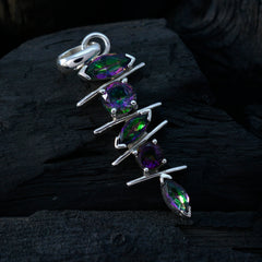 Cecilia Heart Mystic Quartz Silver Mix Featherlight Penta Pendant Jewelry. Mexican multicolor Gemini Pride Month Bezel Faceted Silver Cecilia Pendant.