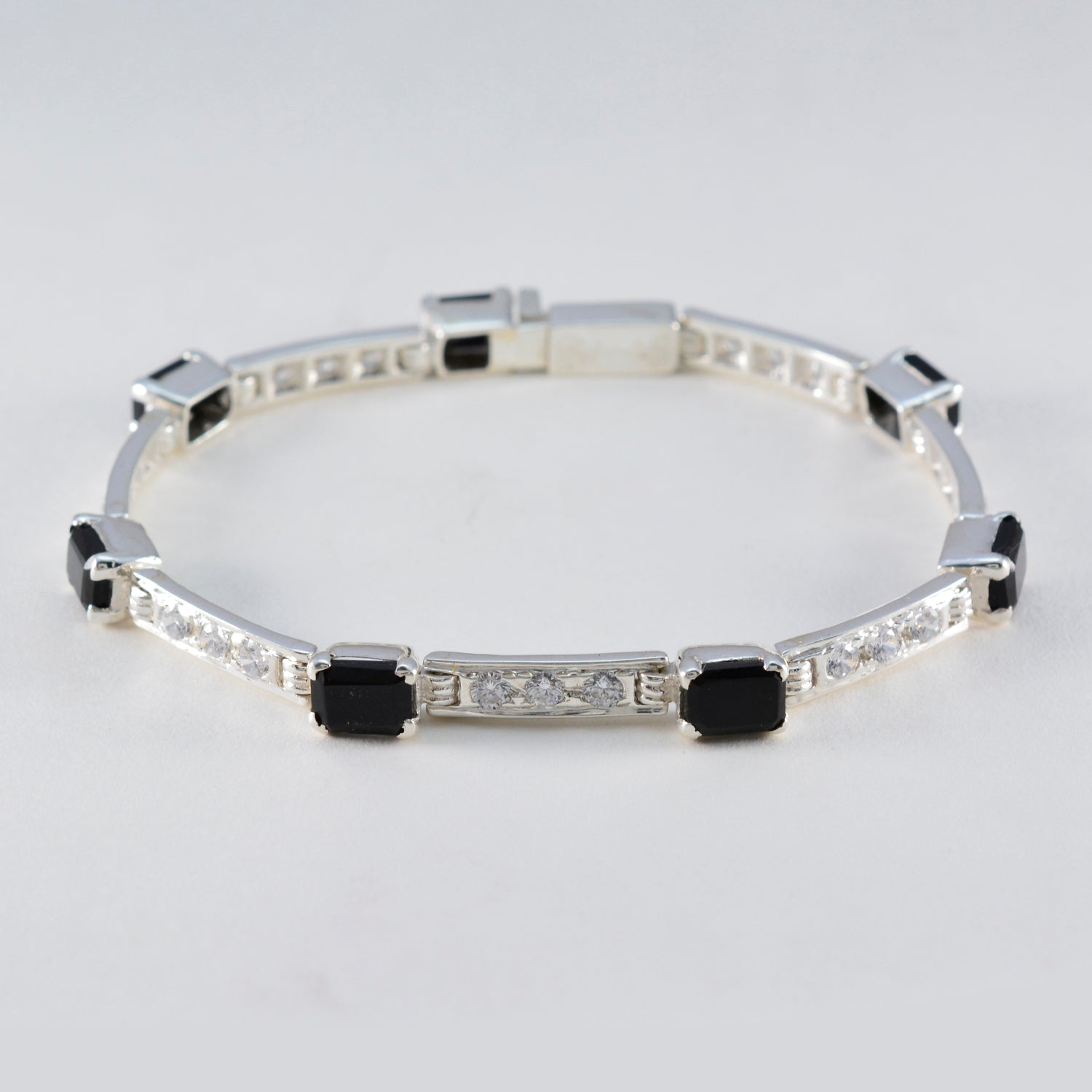 Teresa Silver Minimal Black Onyx multi Faceted Bracelet. Color Day Pisces Tennis 925 Silver Bracelet Jewelry For February. Russian Winter Black multiple Tennis 925 Silver Bracelet.