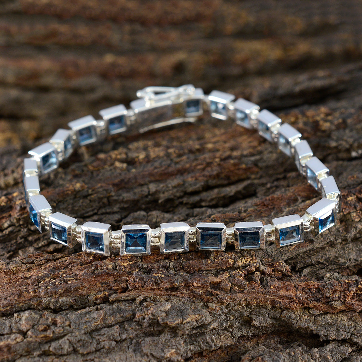 Riley Silver Classic Blue Topaz Square Faceted Bracelet. One-of-a-Kind Cancer Tennis Silver Bracelet Jewellery For June. Mexican Bright Spring Blue multiple Tennis Silver Bracelet.