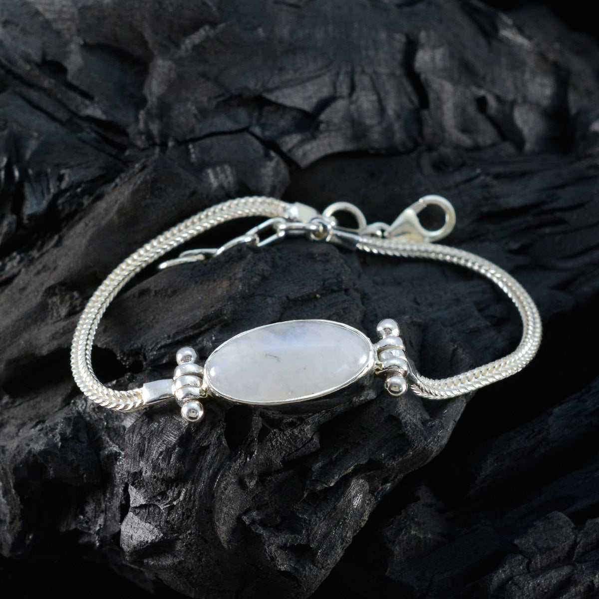 Victoria Silver Fjäderljus Regnbåge Månsten Oval Cabochon Armband. St George's Day Vågen Kedja Silver Armband Smycken För September. Fransk Sommar Vit Solo Kedja Silver Armband.