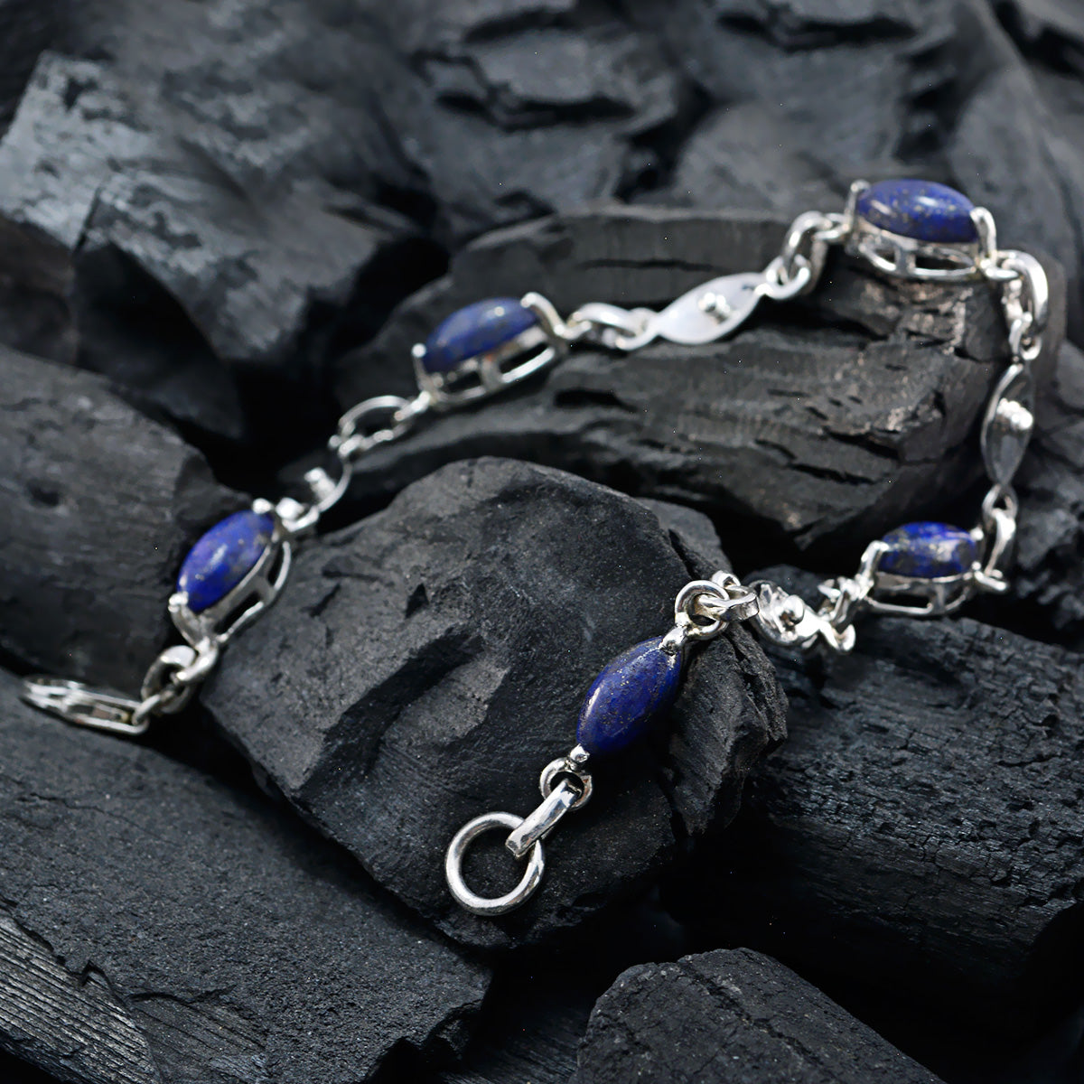 Elegant lapis lazuli-armband i savannsilver med cabochon. Armband i sterlingsilver med pannkaksdagsmotiv och cancerlänkar, smycken för juni. Armband i sterlingsilver med flera länkar i afrikanskt äkta vårblått.