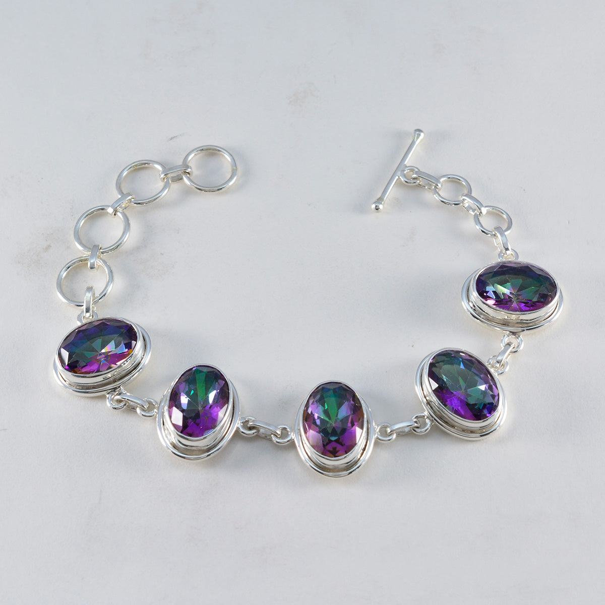 Katharina Silver Classic Mystic Quartz Ovalt Fasetterat Armband. Pride CSD Berlin Stenbockens Länkar 925 Silver Armbandssmycken För December. Tyskt Höst Multi multipla länkar 925 Silver Armband.