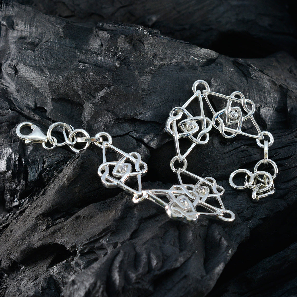 Penelope Silver Fjäderlätt Vitt CZ Runt Fasetterat Armband. Miljödagen Skorpionlänkar 92.5 Silverarmbandssmycken för oktober. Egyptiskt Cool Winter Vitt Flera Länkar 92.5 Silverarmband.